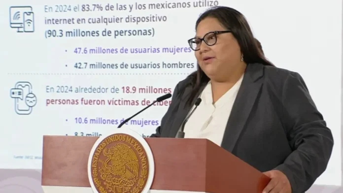 La funcionaria muestra una encuesta de 2024 del Inegi en la que 10 millones de mujeres manifestaron haber vivido ciberacoso.