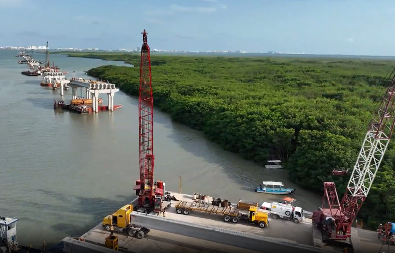 Este tramo, que tiene 103 metros de largo y un peso de 593.6 toneladas, forma parte de la estructura del puente que se está levantando para conectar el Bulevar Luis Donaldo Colosio con el Bulevar Kukulkán, facilitando el acceso a la zona hotelera y al aeropuerto internacional de Cancún. La obra, diseñada para sortear el terreno kárstico de la región, cuenta con una base de zapatas especiales que evitan una caverna natural de 67 metros de diámetro y más de 200 metros de profundidad, asegurando la estabilidad de la estructura.