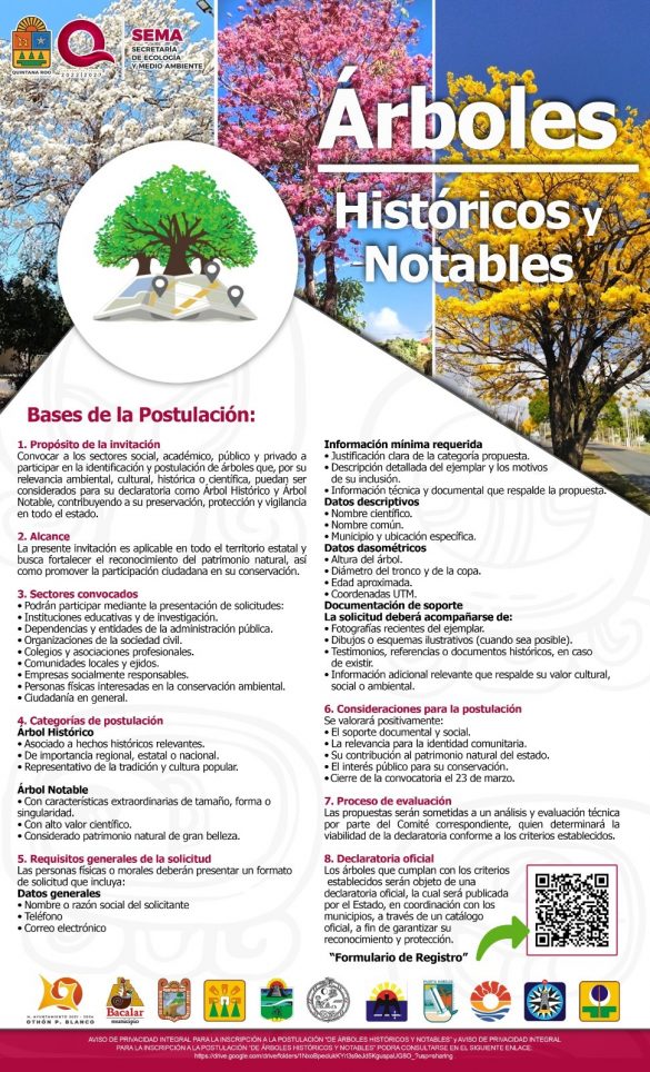 Chetumal.- En una entidad donde la selva y el arbolado urbano forman parte esencial de la identidad territorial, el Gobierno del Estado a través de la Secretaría de Ecología y Medio Ambiente (SEMA) abrió la convocatoria para identificar y postular ejemplares que, por su relevancia ambiental, cultural, histórica o científica, puedan ser declarados Árbol Histórico o Árbol Notable.
