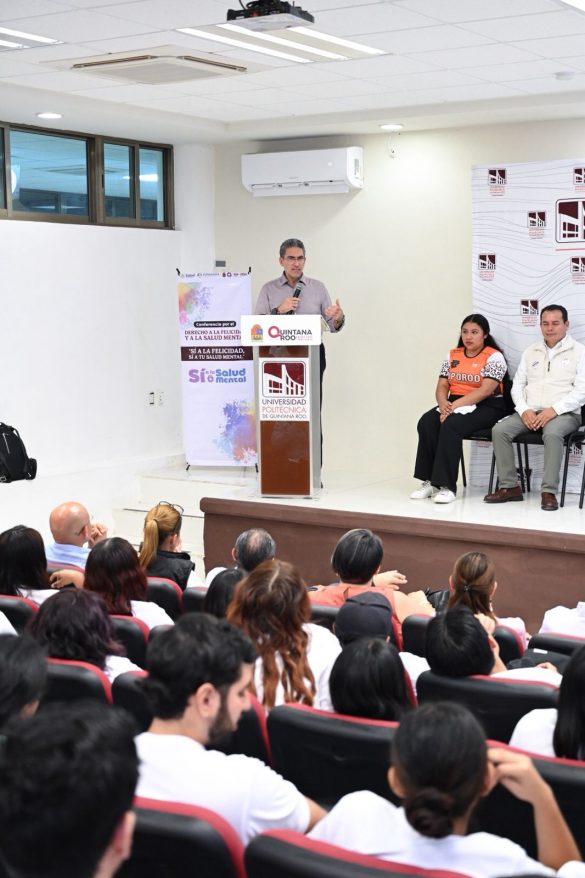 En este marco, se llevó a cabo con éxito la conferencia “El derecho a la felicidad y a la salud mental. Sí a la felicidad, sí a tu salud mental”, en la Universidad Politécnica de Quintana Roo, donde el secretario de Salud, Flavio Carlos Rosado, destacó que “cuando decimos sí a la salud mental, también decimos sí a una vida más plena, más consciente y más feliz”.