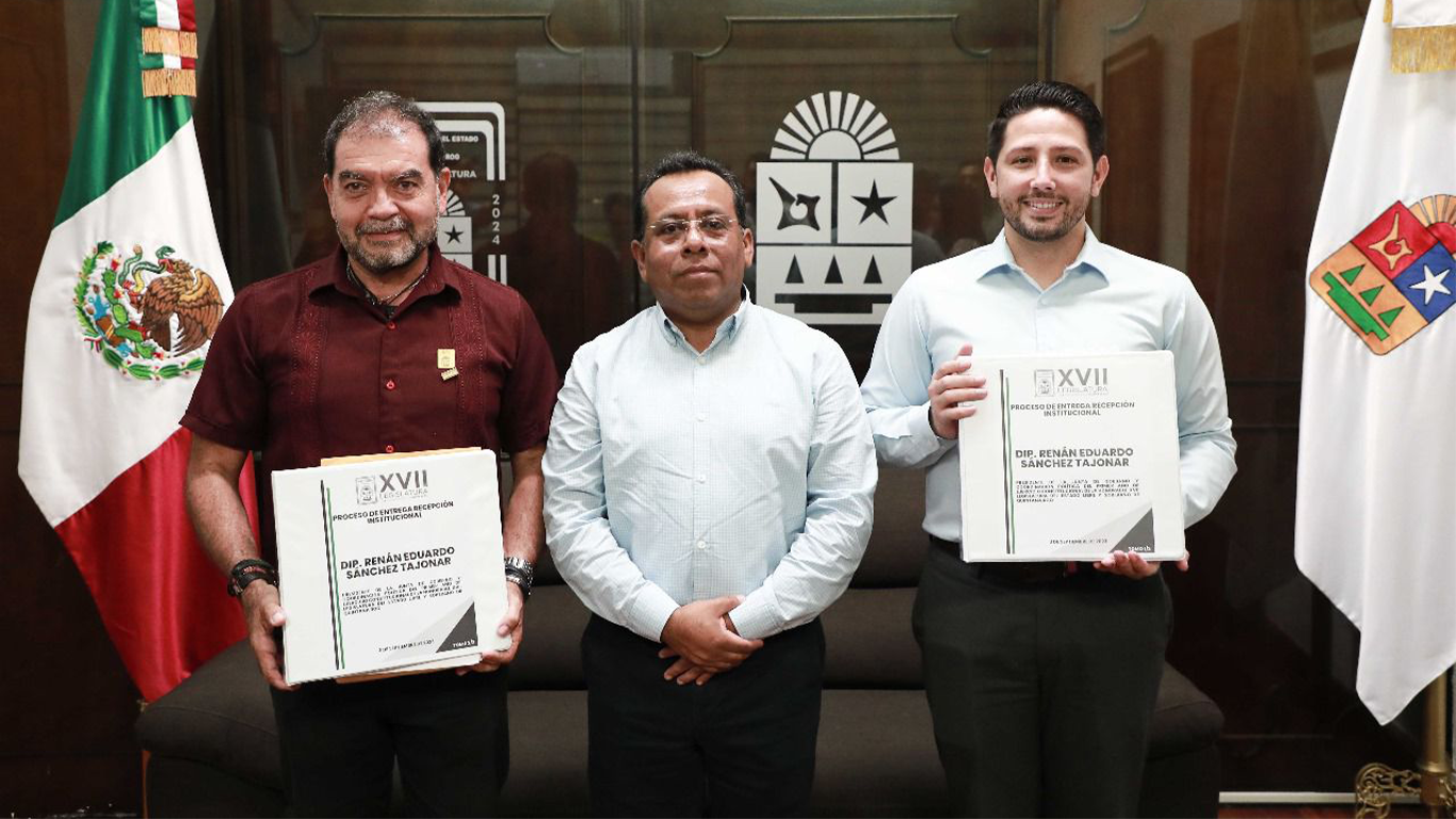 En la oficina de la presidencia de la JUGOCOPO, se llevó a cabo el protocolo de entrega recepción con el presidente saliente Renán Sánchez Tajonar, teniendo como testigo al Auditor Superior del Estado Manuel Palacios Herrera.