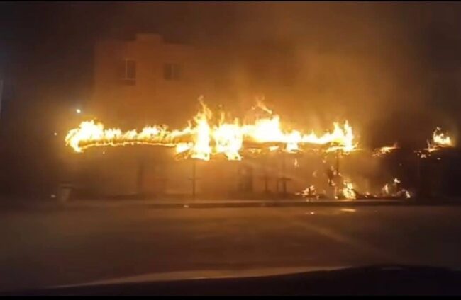 Sin embargo, el hecho que marcó la noche fue el incendio de un negocio en la Región 249, en el fraccionamiento Cielo Nuevo, conocido como “La Palapita”. El siniestro ocurrió durante la madrugada de este domingo y fue presenciado por decenas de vecinos cuyas viviendas colindan con el lugar.