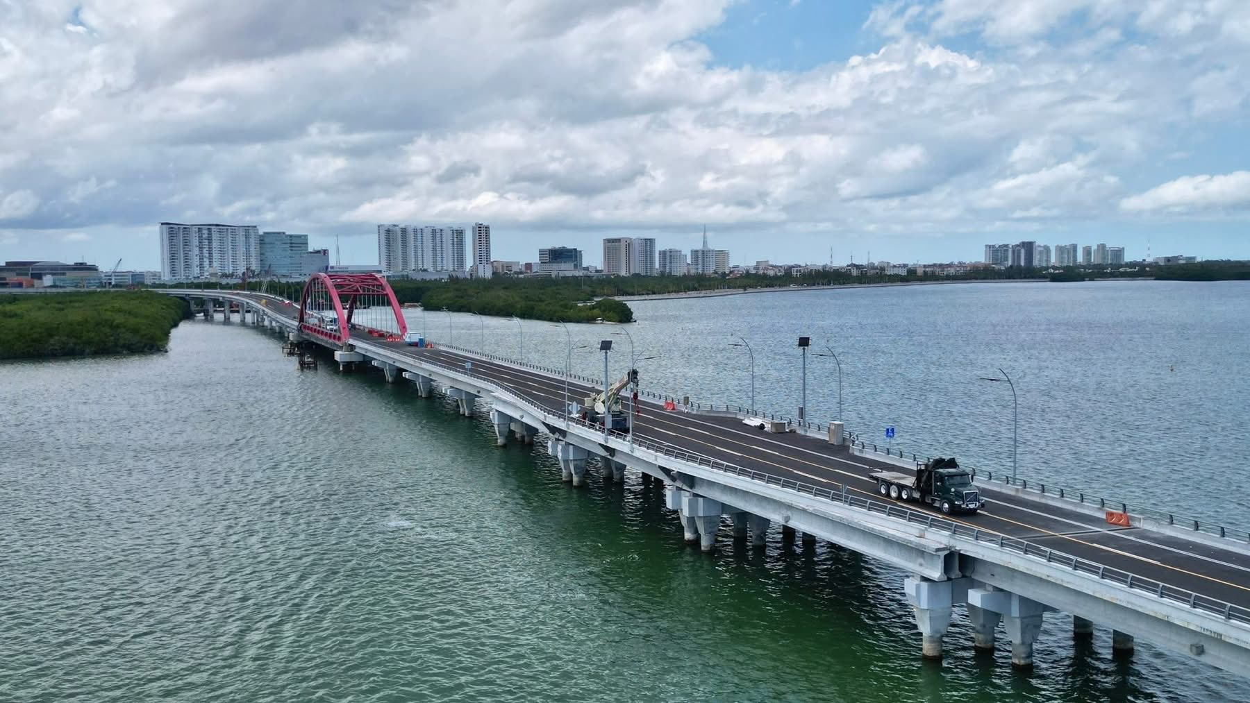 Además de los carriles vehiculares, el puente integra una ciclovía, fomentando medios de transporte alternativos y ofreciendo una vista panorámica inigualable de la belleza natural de Cancún. La construcción ha seguido estrictos protocolos ambientales, utilizando sistemas de cimentación especializados para proteger los manglares y la biodiversidad de la Laguna Nichupté.
