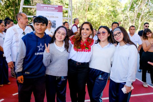 Rancho Viejo, Isla Mujeres.- Al inaugurar el nuevo domo del Colegio de Bachilleres, plantel Ciudad Mujeres, la gobernadora Mara Lezama Espinosa destacó ante las y los estudiantes la importancia de cumplir la palabra, los compromisos, y hoy se cumple la promesa de entregar un domo.