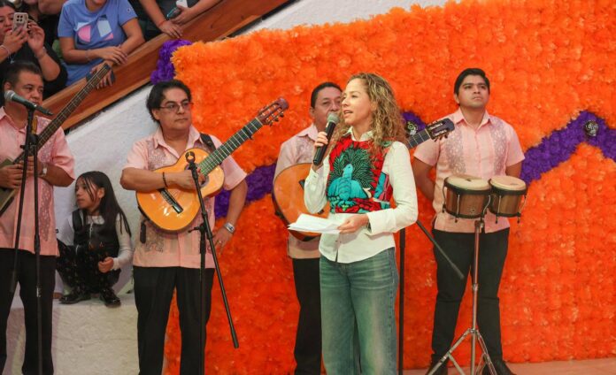 Cancún, Q. R., a 31 de octubre de 2025.- “Un altar de muertos representa un puente espiritual entre el mundo de los vivos y el de los muertos, simboliza la bienvenida y el recuerdo de los difuntos en el Día de Muertos”, dijo la Oficial Mayor, Nora Espinoza Hernández, en representación de la Presidenta Municipal, Ana Paty Peralta, durante la inauguración del altar alusivo a los ex presidentes municipales de Benito Juárez en el domo del Palacio Municipal, como parte de las tradiciones mexicanas que unen a las familias cancunenses.