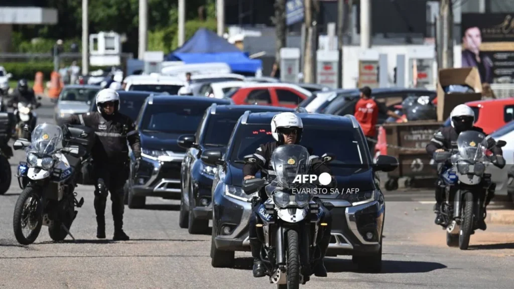 El convoy que trasladó a Bolsonaro tardó apenas unos minutos en ir desde las dependencias de la Policía Federal de Brasilia, donde cumple su condena, hasta el DF Star.