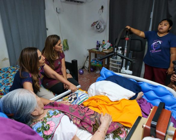 Chetumal.- La gobernadora Mara Lezama Espinosa y la presidenta honoraria del Sistema DIF Quintana Roo, Verónica Lezama, visitaron a la abuelita María Magdalena, de 88 años de edad, a quien le entregaron una grúa hidráulica para mejorar sus condiciones de vida.