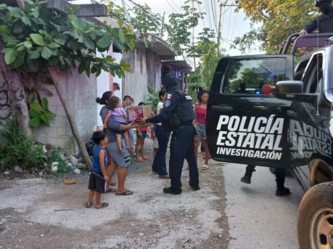 En un acto conmovedor de solidaridad, los valientes elementos de la Policía Estatal de Investigación de Cancún se unieron para llevar alegría a las familias más necesitadas de Benito Juárez. En un esfuerzo conjunto, los policías se organizaron y contribuyeron para llevar despensas y juguetes a colonias que enfrentan mayores dificultades.