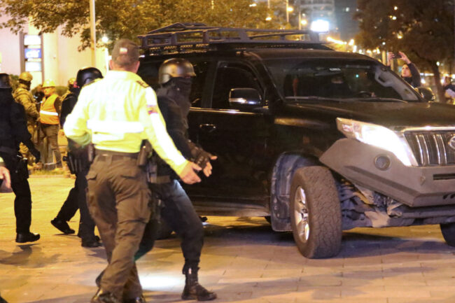 Ecuadorian police special forces attempt to enter the Mexican embassy in Quito to arrest Ecuador’s former Vice President Jorge Glas, on April 5, 2024. Mexican President Andres Manuel Lopez Obrador ordered on April 5, 2024 the “suspension” of relations with Ecuador after Ecuadorian police raided the Mexican embassy in Quito to arrest former vice president Jorge Glas, who had received refuge. (Photo by ALBERTO SUAREZ / AFP)