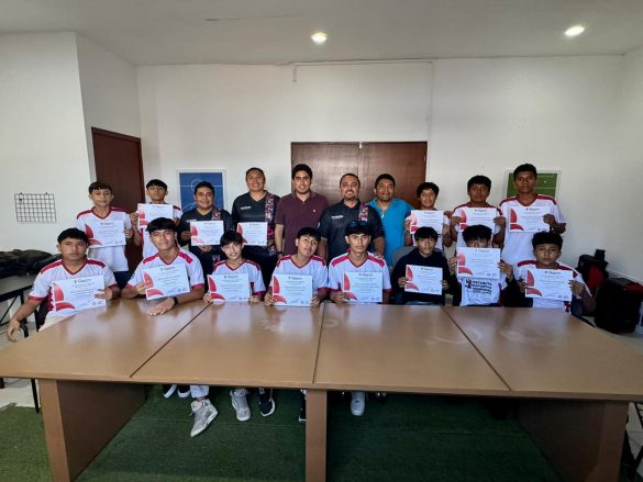 Cancún.- Para reconocer el esfuerzo, entrega y su gran resultado, el presidente de la Comisión del Deporte de Quintana Roo (CODEQ), Jacobo Arzate Hop, platicó y además entregó reconocimientos a las y los jugadores integrantes de los equipos campeones del Torneo Estatal Socca 2025, el cual fue el preámbulo de la pasada fiesta mundialista del Socca, que se realizó en Cancún.