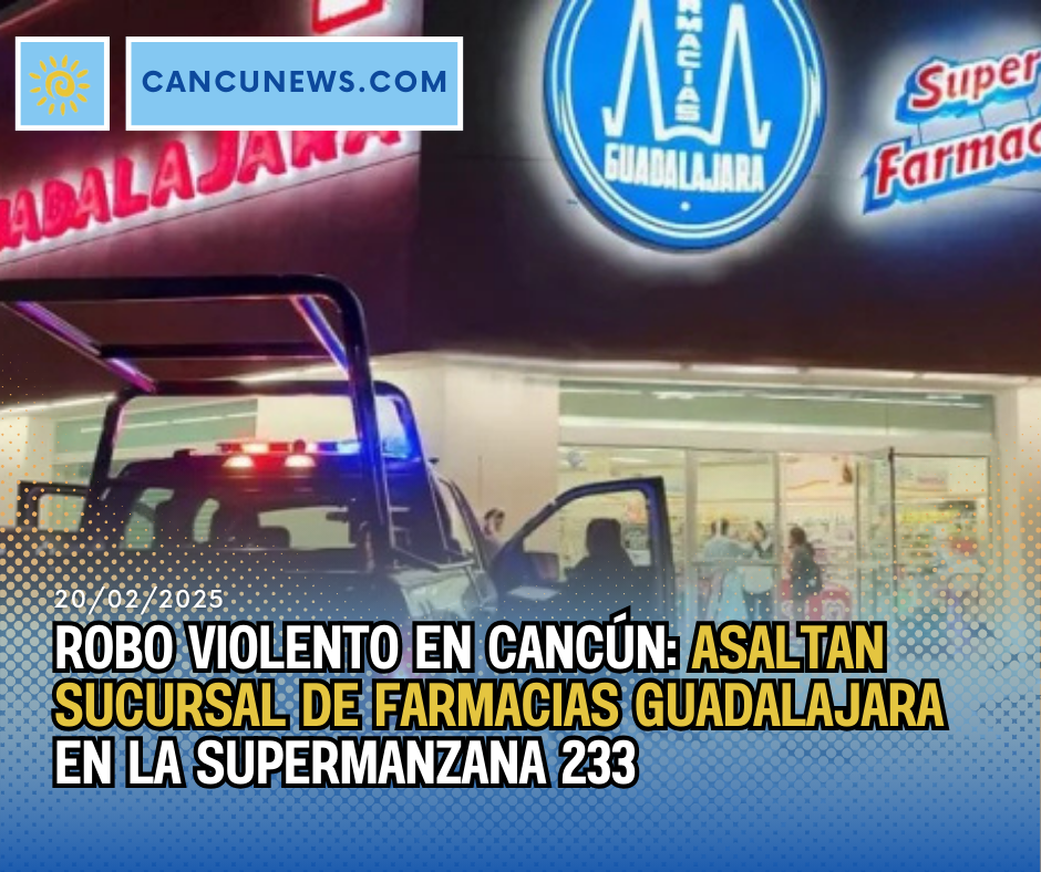 Un violento asalto armado ocurrió en la sucursal de Farmacias Guadalajara ubicada en la Supermanzana 233 de Cancún, cuando dos delincuentes irrumpieron en el establecimiento y despojaron a los empleados de sus pertenencias. El hecho, que también incluyó el robo de la caja registradora, ocurrió alrededor de las 3:00 horas del miércoles 19 de febrero de 2025.