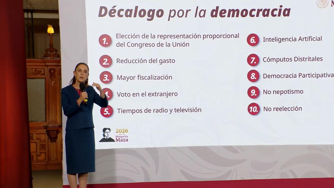 La presidenta Claudia Sheinbaum informó que concluyó la propuesta de Reforma Electoral que enviará a la Cámara de Diputados. El proyecto, al que denominó Decálogo por la Democracia, reúne diez puntos que buscan modificar aspectos estructurales del sistema político-electoral mexicano.