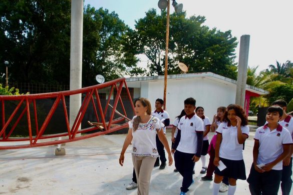 “En este gobierno humanista con corazón feminista nos comprometimos a que todas las escuelas de Quintana Roo, de todos los niveles educativos, tendrían un domo. Y aquí estamos, cumpliendo la palabra, en la telesecundaria “Luis Donaldo Colosio Murrieta” de Huay-Pix que desde hace 41 años no contaba con un domo”, expresó la titular del Ejecutivo.