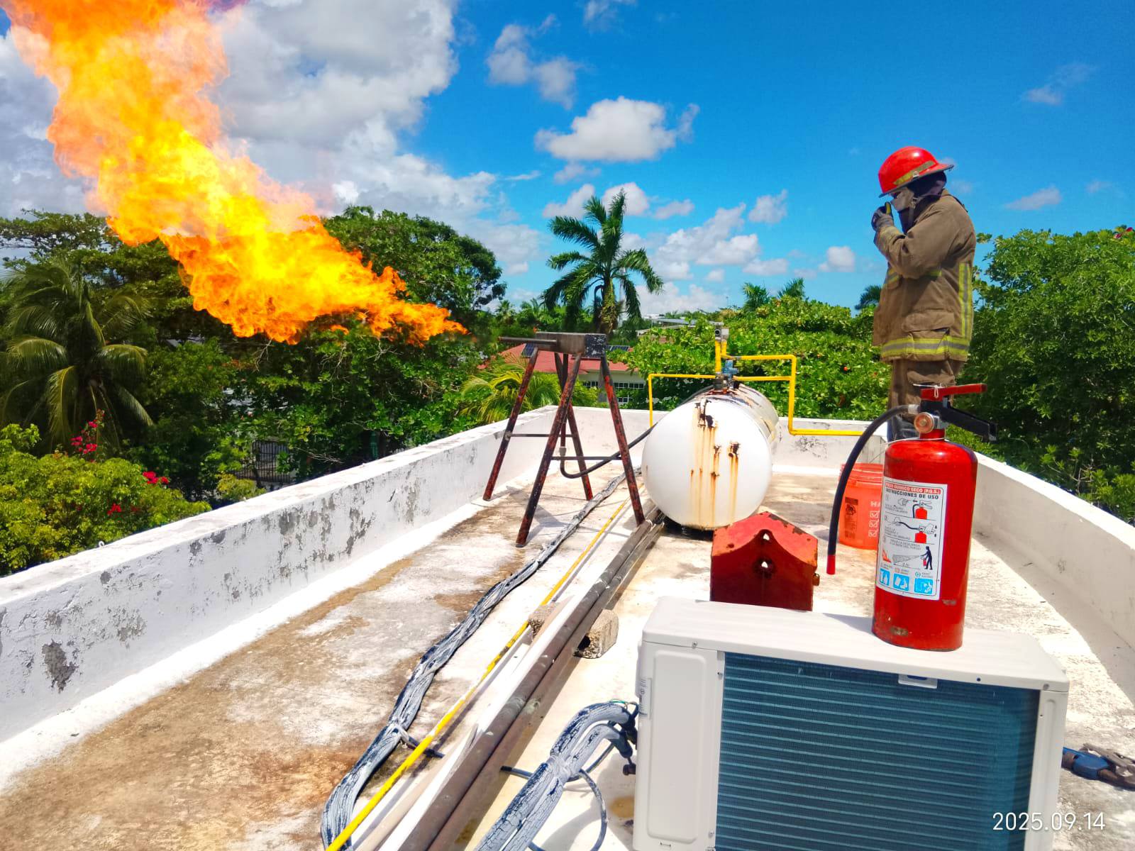 Al arribar al domicilio, el H. Cuerpo de Bomberos de Cancún constató que el tanque presentaba fuga en la parte inferior. De inmediato se procedió a contener la situación y posteriormente se realizó una quema controlada del gas, eliminando cualquier riesgo de explosión.