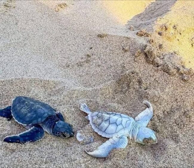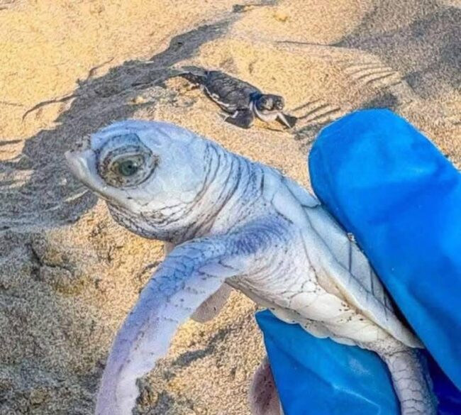Un fenómeno natural poco común sorprendió al equipo del Campamento Tortuguero “Ayotlcalli” en Zihuatanejo, Guerrero, cuando el pasado 27 de abril nació una tortuga marina con leucismo, una condición genética extremadamente rara que provoca la pérdida parcial de pigmentación en la piel.